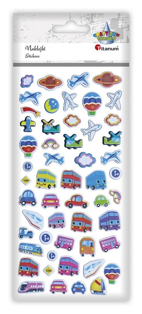 Opakowanie Naklejki wypukłe miękkie pojazdy,planety mix 53szt