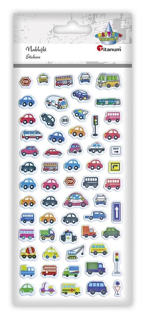 Opakowanie Naklejki wypukłe miękkie pojazdy, znaki mix 62szt