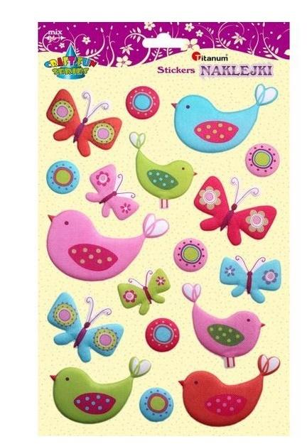 Opakowanie Naklejki wypukłe miękkie ptaszki i motylki 18szt