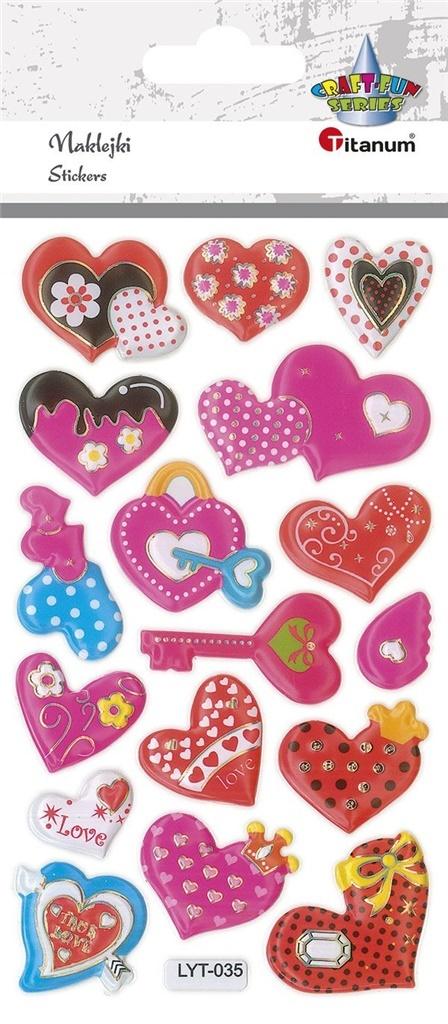 Opakowanie Naklejki wypukłe miękkie serca mix 17szt