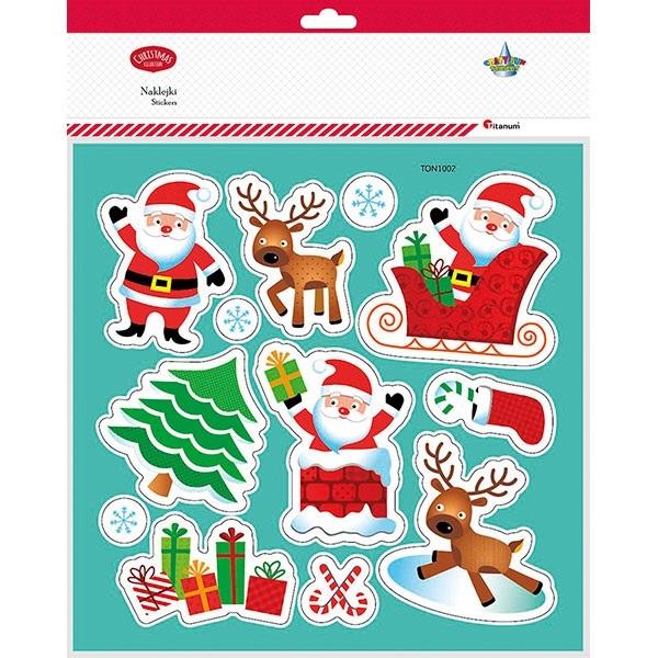 Naklejki wypukłe Mikołaje, renifery, choinka mix 12szt.