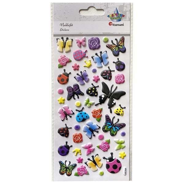 Naklejki wypukłe: motyle, biedronki, kwiaty - 47 sztuk.