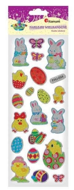 Naklejki wypukłe holograficzne pisanki, zające, kurczaczki, kaczuszki 20szt.