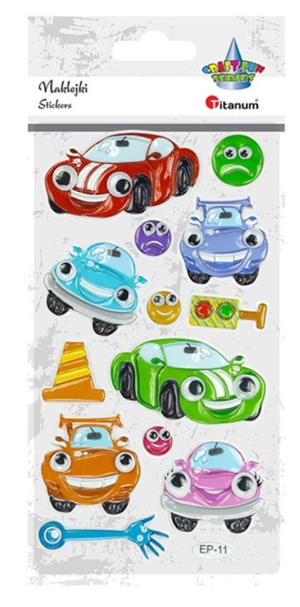 Opakowanie Naklejki wypukłe pojazdy z ruchomymi oczami 13szt