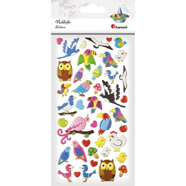 Naklejki wypukłe: ptaki, serca - 42 sztuki.