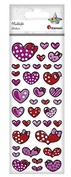 Naklejki wypukłe [70x215] serca czerwone, różowe 38szt.