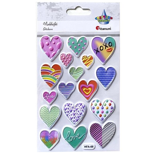 Naklejki wypukłe: serca, mix kolorów i rozmiarów 17 sztuk.