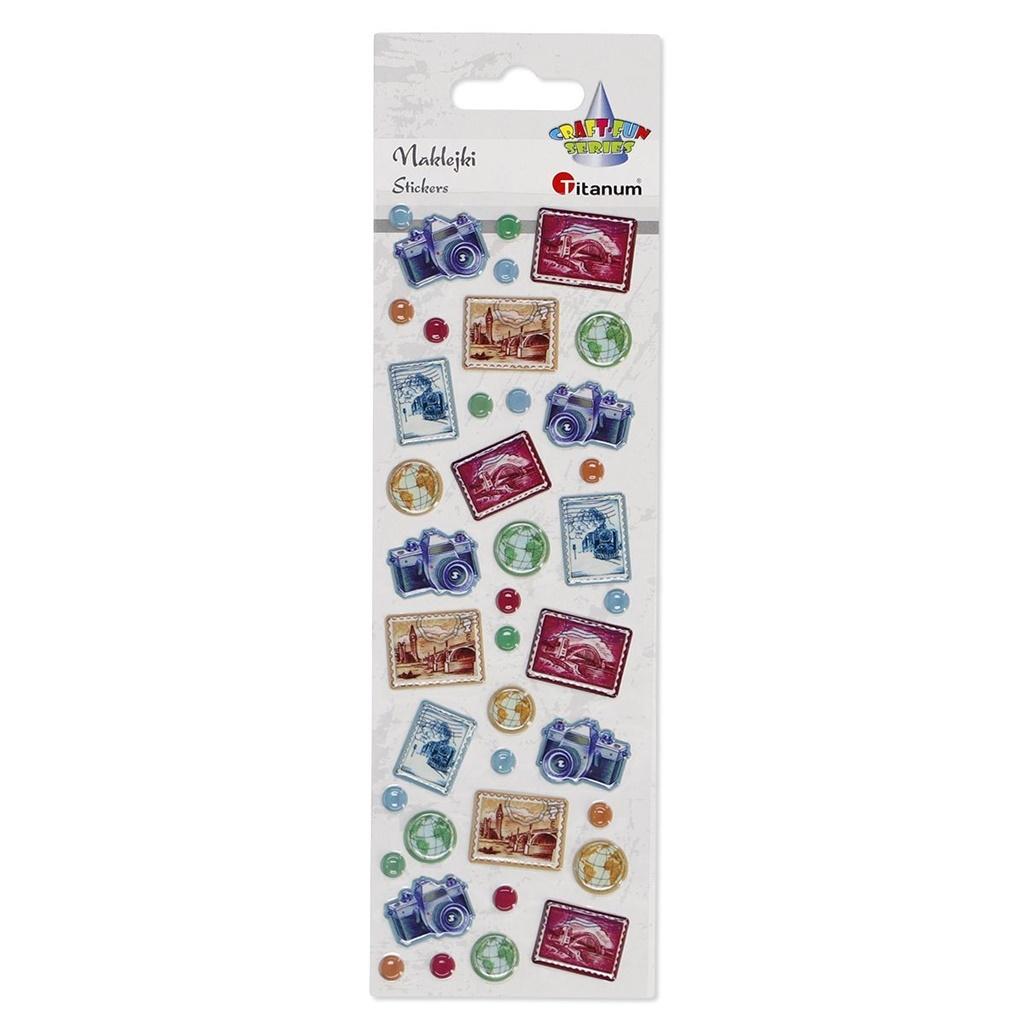 Naklejki wypukłe. Kształty: znaczki pocztowe, aparaty fotograficzne, kolory: mix.