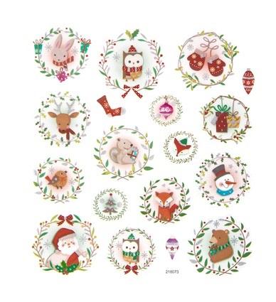Naklejki z motywem wieńców i uroczych zwierzątek to doskonały dodatek do prac tworzonych przez dzieci oraz wszelkich projektów scrapbookingowych, jak kartki okolicznościowe, pakowanie prezentów i ozdoby na choinkę.
