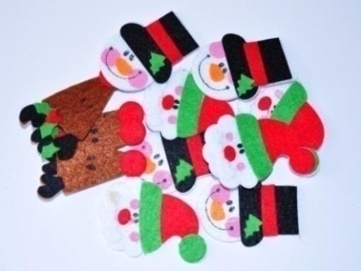 Naklejki z filcu głowy Mikołaja i Bałwana.