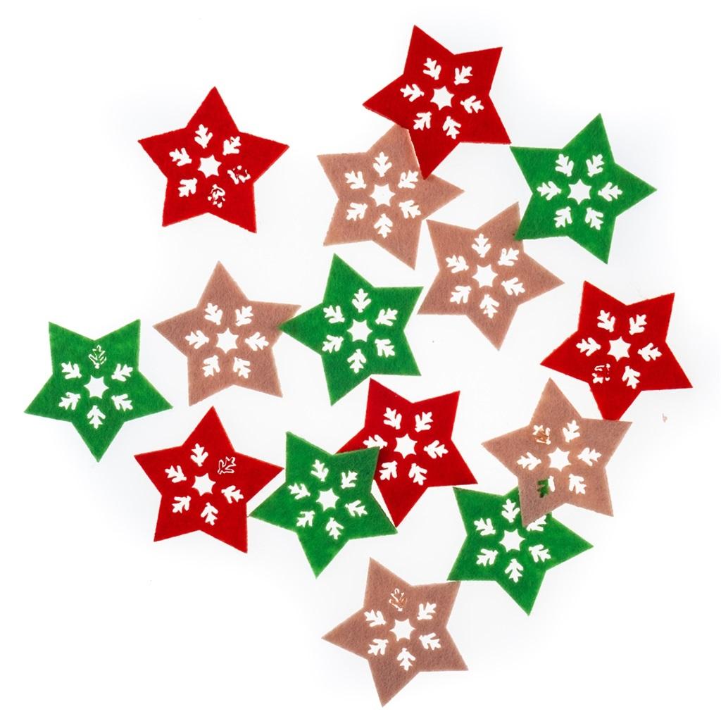 Samoprzylepne gwiazdki z filcu w trzech klasycznych kolorach: czerwieni, zieleni i uniwersalnym beżu.