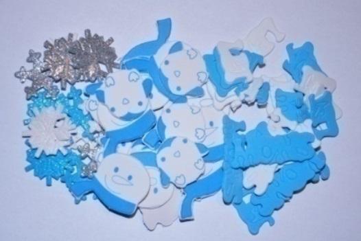 Naklejki z pianki z brokatem nazwa: śnieżynki, bałwanki ilość: 68 szt