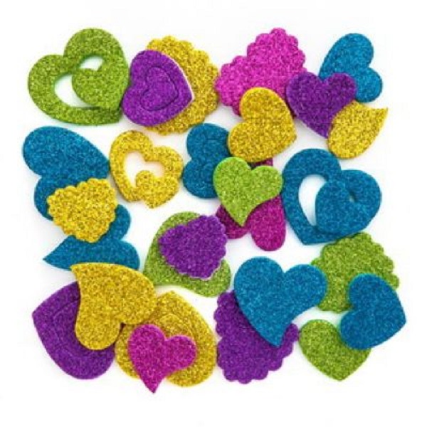 Opakowanie Naklejki z pianki brokat - serca 45 szt.