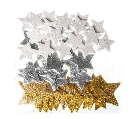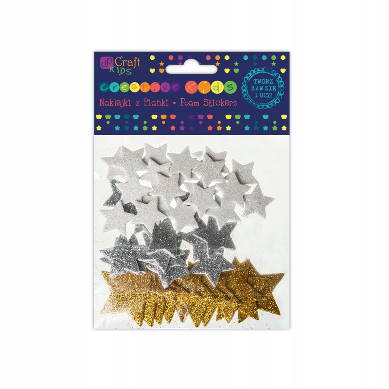 Brokatowe naklejki z pianki w kształcie gwiazdek w trzech kolorach i rozmiarach znakomicie wyzwalają dziecięcą aktywność twórczą wszelkiego rodzaju. Doskonale sprawdzają się w cardmakingu, scrapbookingu oraz wielu innych technikach kreatywnych. Ilość w opakowaniu: 45 szt. Rozmiar: mix