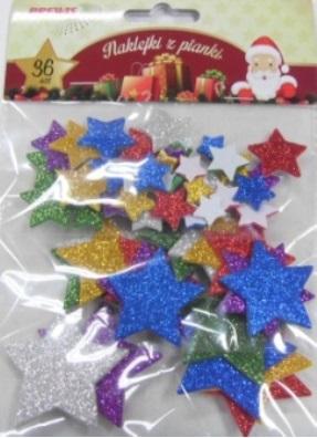 Opakowanie Naklejki z pianki gwiazdki z brokatem 36szt