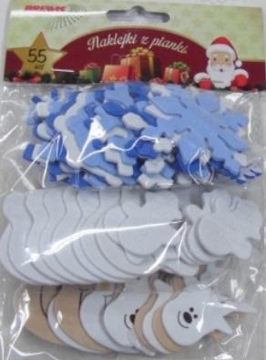Opakowanie Naklejki z pianki renifery bałwany śnieżynki 55szt