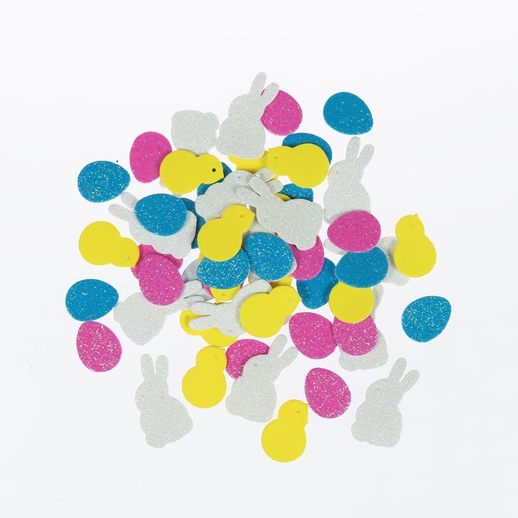 Naklejki z pianki z brokatowymi wzorami kurczaczków, zajączków i jajek to wyjątkowy sposób na ozdobienie wielkanocnych projektów. Idealne do kreatywnych prac plastycznych, dekorowania kartek lub koszyczków. Brokatowe wykończenie dodaje blasku każdej dekoracji.