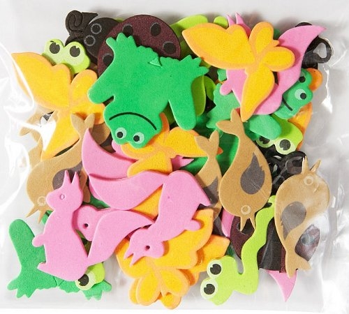 Naklejane zwierzątka z pianki PVC. Miks rozmiarów, wzorów i kolorów. Opakowanie 40 sztuk. Można ozdobic album, kartki, itp.