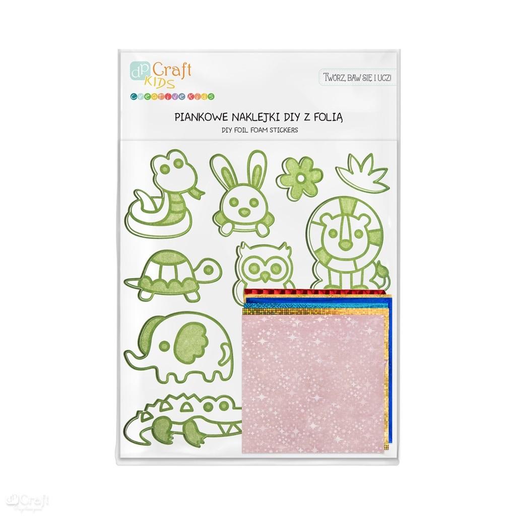 Wyjątkowe, piankowe naklejki z motywami zwierzątek do samodzielnego wykonania to doskonały prezent dla dziecka! Do zestawu dołączonych jest 10 kolorów błyszczących folii, służących do przyozdobienia nalepek.