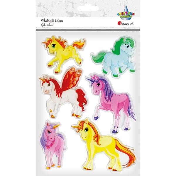 Naklejki żelowe kucyki, jednorożce, 6 szt.