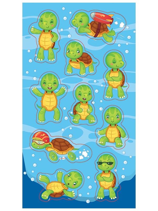 Zestaw naklejek do ozdoby zeszytów, albumów, listów, pocztówek - 10 fajniutkich żółwików.