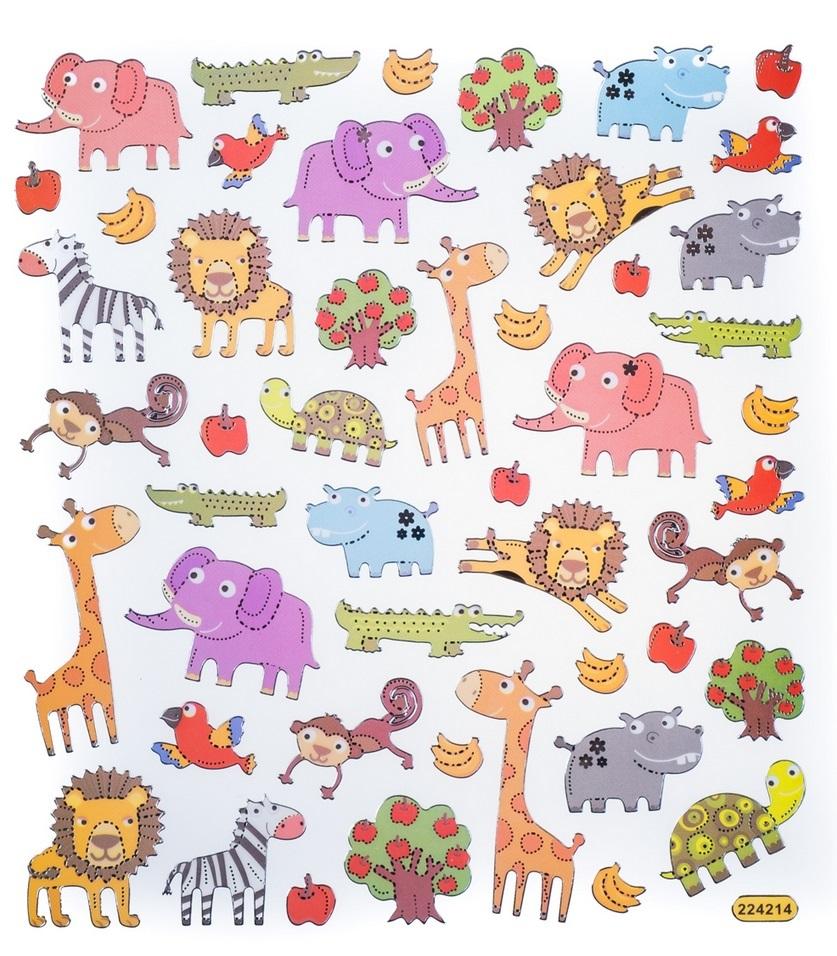 Zestaw kolorowych naklejek z błyszczącymi srebrnymi akcentami z motywem egzotycznych zwierzaków . Wspaniale udekorują przyjęcie Twojego dziecka! Dzięki nim stworzysz oryginalne zaproszenia, urodzinowe dekoracje, topper na tort, pikery do babeczek. Fant