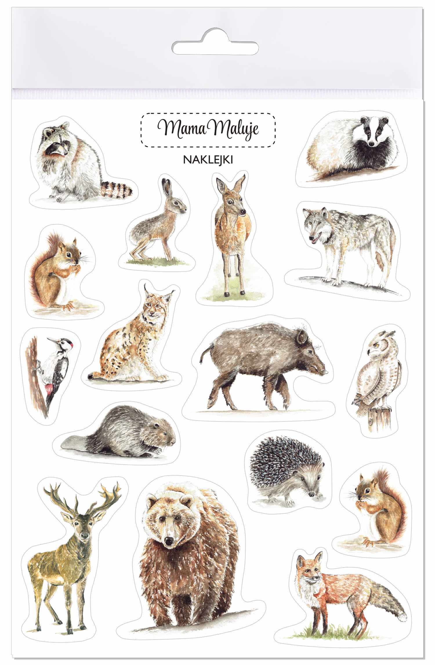 Naklejki przedstawiają realistyczne ilustracje zwierząt.