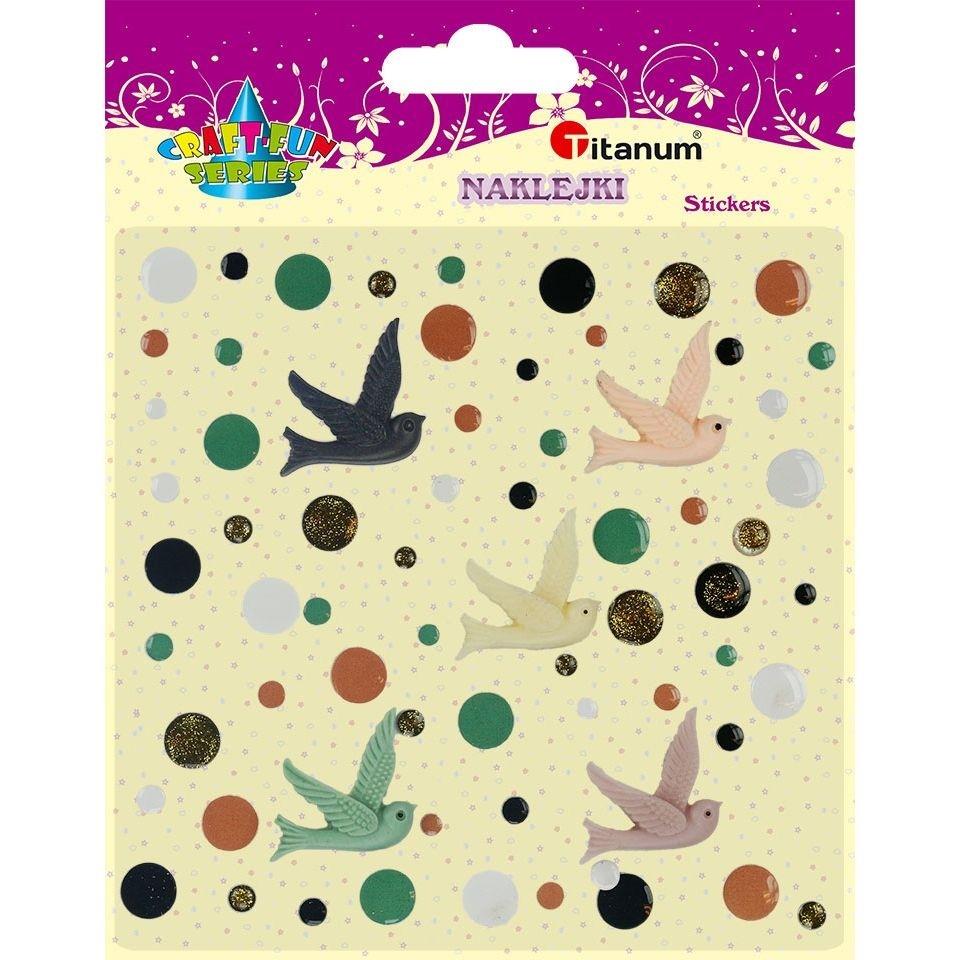 Opakowanie Naklejki żywica 3D ptaszki 5szt + kółka mix 60szt