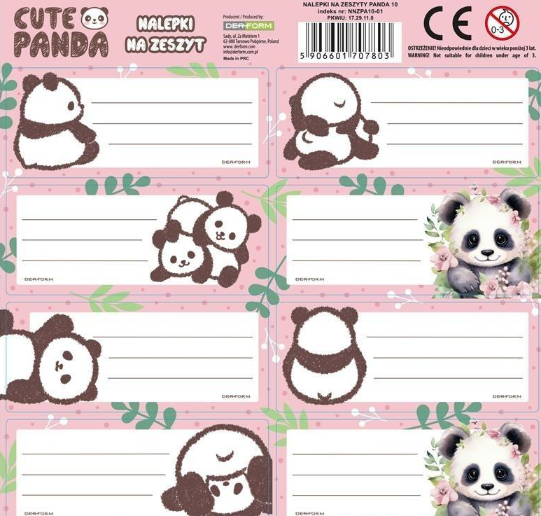 Opakowanie Nalepki na zeszyty Panda 10 (25szt) DERFORM