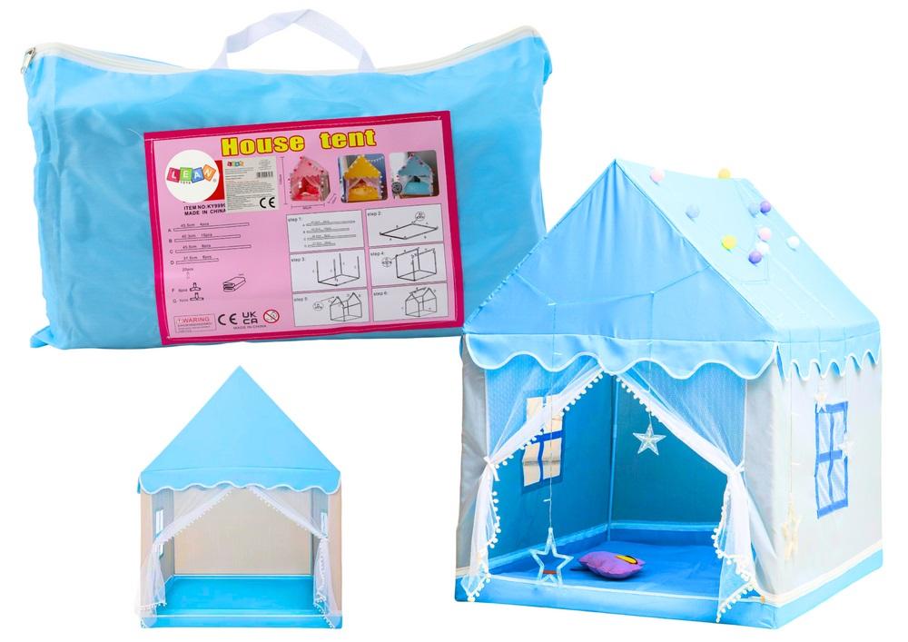 Namiot Domek Dziecięcy Przenośny Składany Niebieski Przenośny namiot do zabawy dla dzieci to idealne rozwiązanie dla maluchów, które uwielbiają tworzyć swoje własne przestrzenie do zabawy i odpoczynku. Ten kryty domek w kolorze niebieskim nie tylko przyciąga uwagę swoim atrakcyjnym wyglądem, ale także zapewnia doskonałe warunki do zabawy zarówno w domu, jak i na świeżym powietrzu. Namiot wyposażony jest w dwa małe okna po obu stronach, które zapewniają dobrą wentylację i pozwalają dzieciom na stałą kontrolę otoczenia. Zasłony przy oknach można związać, co umożliwia dzieciom swobodne przechodzenie oraz wprowadza elementy zabawy, takie jak ukrywanie się czy zabawy w chowanego. Wykonany z wytrzymałego i oddychającego materiału, namiot jest wystarczająco mocny, aby zapewnić długotrwałe użytkowanie. Jego solidna konstrukcja sprawia, że jest stabilny, a jednocześnie lekki, co ułatwia przenoszenie. Namiot jest przestronny, oferując dzieciom wygodne miejsce do siedzenia, zabawy, a nawet drzemki, niezależnie od tego, czy znajduje się na podłodze w pokoju, czy na trawie w ogrodzie. Montaż namiotu jest szybki i prosty, co pozwala na błyskawiczne stworzenie idealnego miejsca do zabawy. Po złożeniu namiot jest kompaktowy, co ułatwia transport i przechowywanie, sprawiając, że jest to wygodne rozwiązanie dla rodzin, które często podróżują lub mają ograniczoną przestrzeń. Namiot do zabawy dla dzieci to doskonały wybór dla rodziców, którzy chcą zapewnić swoim pociechom bezpieczne i kreatywne środowisko do zabawy. Jego funkcjonalność, trwałość i łatwość w użytkowaniu czynią go idealnym dodatkiem do każdej przestrzeni, zarówno wewnętrznej, jak i zewnętrznej. Wymiary domku: 135cm x 125cm x 95cm Wymiary torby: 50cm x 30cm x 8cm Posiada certyfikat CE, ponadto jest zgodny z normą EN71. Przeznaczony dla dzieci powyżej 3 roku życia.