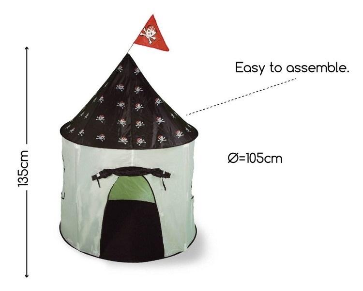 Bardzo łatwy do złożenia namiot dla małego pirata. Bawiąc się w nim poczujesz się, jak prawdziwy pirat!
