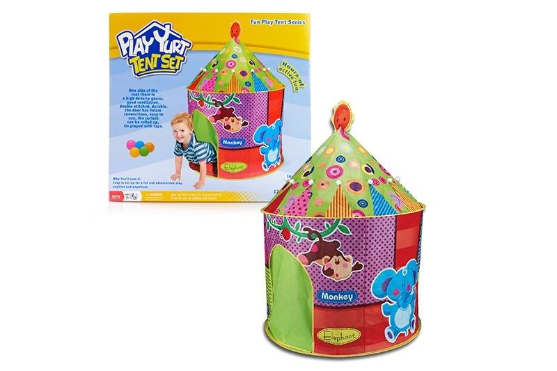 W ZESTAWIE: NAMIOT, 12 PIŁECZEK, WYM. NAMIOTU: 88 X 125 X 88 CM., WYM. OPK: 42 X 38 X 14 CM., 3+