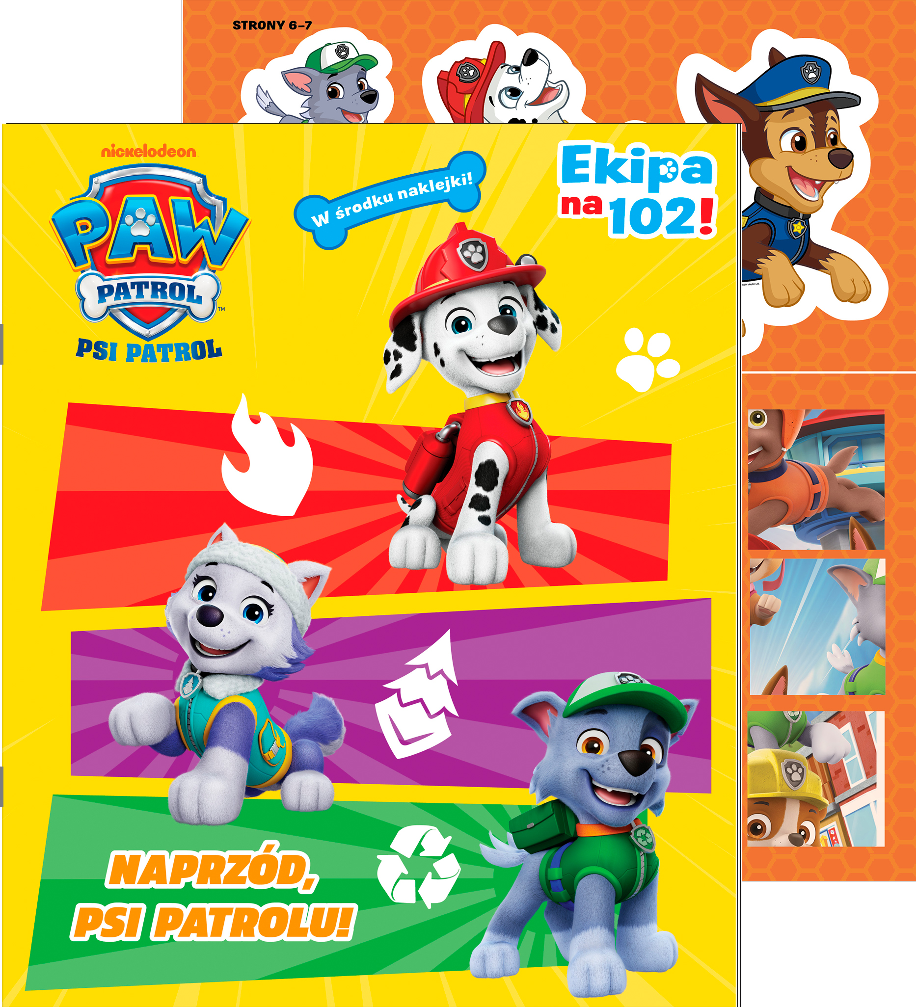 Psi Patrol. Ekipa na 102! zawiera zagadki, łamigłówki oraz kolorowanki z ulubionymi bohaterami w roli głównej. W środku również kolorowe naklejki z dzielnymi pieskami! Rezolutne szczenięta Marshall, Rubble, Chase, Rocky, Zuma i Skye oraz dziesięcioletni chłopiec Ryder nigdy nie odmówią pomocy potrzebującym. Pomagaj pieskom w ich bohaterskiej misji poprzez rozwiązywanie różnorodnych zadań.
