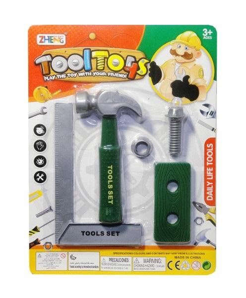 Zestaw narzędzi dla małego majsterkowicza. Produkt zawiera: młotek, miarę, śruby. Pomocne będą podczas niejednej naprawy. Produkt zapakowany w kartonową podstawkę z przezroczystym kloszem. Produkt przeznaczony dla dzieci od 3 lat.