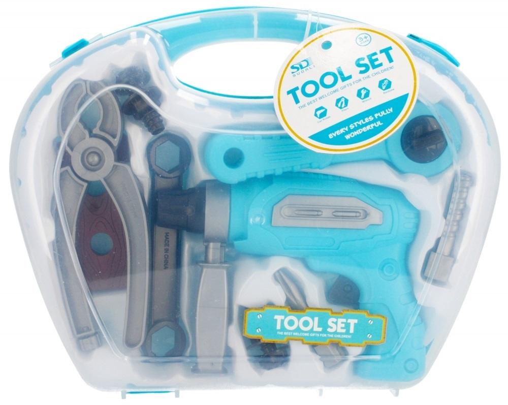 Zalety produktu: nauka używania narzędziw warsztatowych, rozwijanie zdolności manualnych, wiertarka posiada ruchome wiertło, klucz posiada ruchomy element. Dzięki MEGA CREATIVE Twoja pociecha pozna zastosowanie różnych narzędzi co być może w przyszłości zaowocuje podczas drobnych domowych usterek. Zabawa narzędziami wspomoże rozwój zdolności manualnych oraz logicznego myślenia dziecka! Zawartość zestawu: wiertarka, klucz płaski oczkowy, klucz grzechotka, kombinerki, dwie końcówki do wiertarki, deska, dwie śrubki z nakrętką. Narzędzia schowane w wygodnej do przenoszenia walizce. Całość wykonana z plastiku. Wymiary/waga/baterie: wymiary produktu (dł. x wys. x gł.)[cm]: 15x12x4, wymiary opakowania (dł. x wys. x gł.) [cm]: 27x21x7, waga produktu bez opakowania [kg]: 0,14 kg, waga produktu w opakowaniu [kg]: 0,36 kg, nie wymaga zasilania bateriami. Zestaw przeznaczony dla dzieci w wieku: 3+. Pakowany w walizkę.