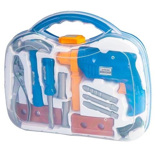 Narzędzia w dużej walizce to doskonała zabawka dla małego majsterkowicza. Wszystkie narzędzia po zabawie można schować do środka.