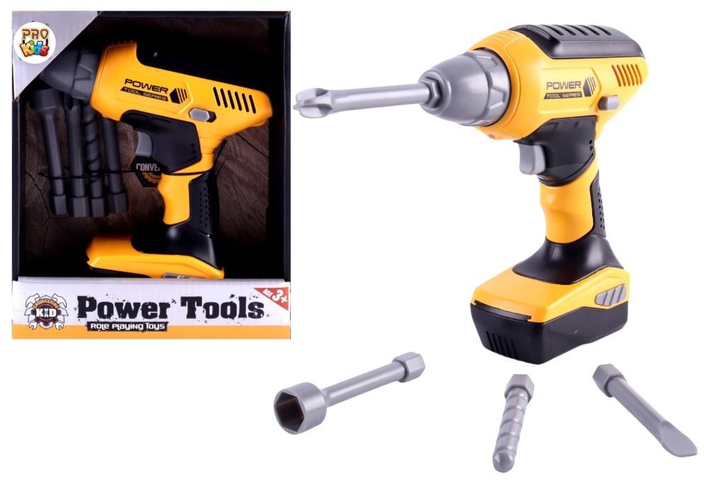 4 wymienne końcówki: wiertło, śrubokręt płaski, krzyżakowy oraz klucz nasadowy