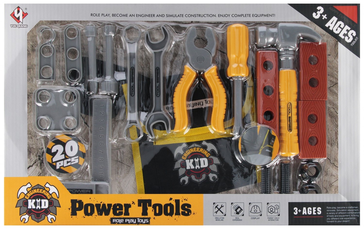 Wygodny pas do noszenia narzędzi ułatwia zabawę w majsterkowicza. Całość wykonana z plastiku i materiału.