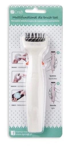 Narzędzie do czyszczenia ażurowych wykrojników z resztek papieru, których usuwanie jeszcze nigdy nie było tak proste! Dodatkowo w rączce znajdują się szpatułka oraz igła - niezbędne narzędzia podczas pracy z wykrojnikami.