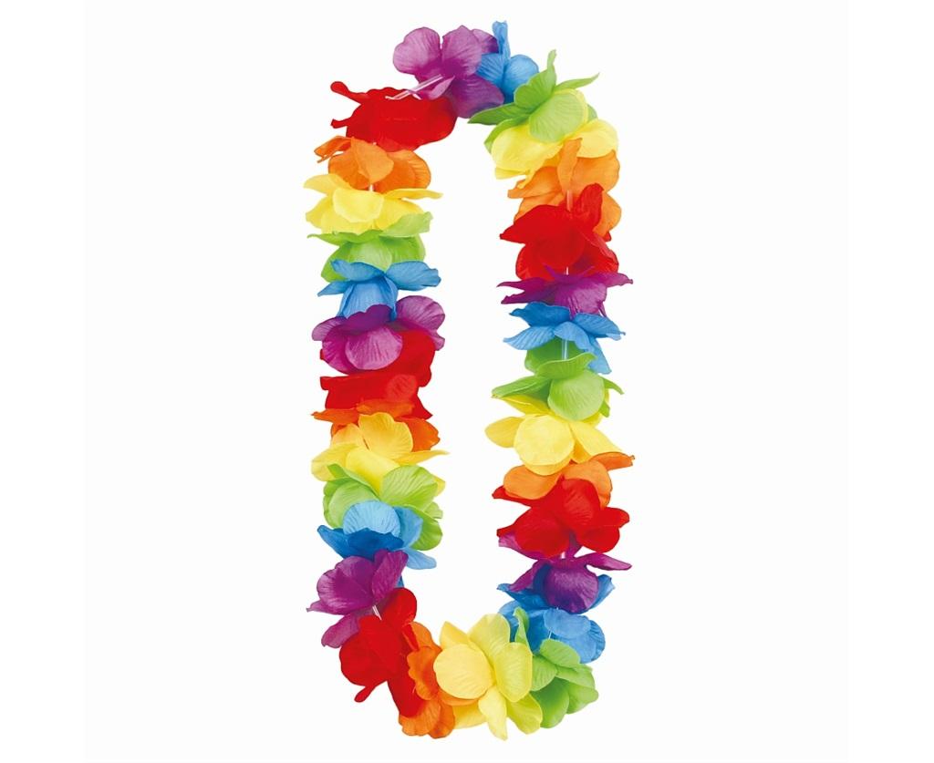 NASZYJNIK HAWAJSKI NEONOWY Długość: ok. 120 cm Ilość sztuk w opakowaniu: 1 Kolor: wielokolorowy Wykonany z materiałowych wielokolorowych kwiatów. Kwiaty oddzielone są od siebie przeźroczystymi, cienkimi słomkami, dzięki czemu nie ściągają sie ani nie zsuwają w jedno miejsce