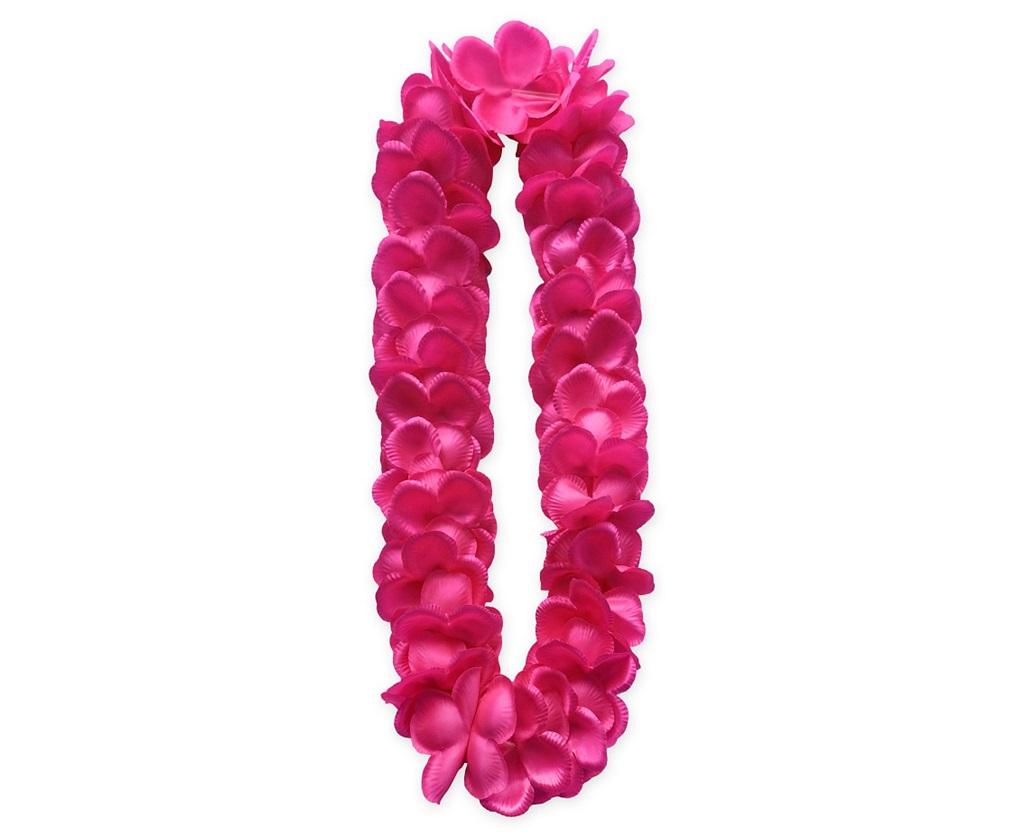 NASZYJNIK HAWAJSKI SATYNOWY Długość: ok. 120 cm Ilość sztuk w opakowaniu: 1 Kolor: różowy Wykonany z materiałowych różowych kwiatów. Kwiaty oddzielone są od siebie przeźroczystymi, cienkimi słomkami, dzięki czemu nie ściągają się ani nie zsuwają w jedno miejsce.