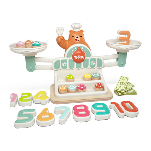 LICENCJA TOP BIRGHT WYMIARY 25x13x22,5 Ta zabawka została zaprojektowana, aby pomóc dzieciom nauczyć się podstaw ważenia rzeczy poprzez liczenie liczb i ciastek, aby utrzymać równowagę po obu stronach wagi.