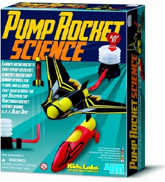 Poznaj zasady dynamiki Newtona i dowiedz się jakiej potrzeba siły by wprawić w ruch mikro rakietę, która wylatuje w powietrze na 6 metrów, rakietową wyścigówkę, która mknie po podłodze i szybowiec, który mknie po niebie. 3..2..1.. Start! Jak to możliwe? Kiedy naciskasz energicznie na pompkę, sprężasz powietrze które znajduje się w środku. Powoduje to nagły wzrost ciśnienia w mieszku. Powietrze to przemieszcza się z impetem przez rurkę tworząc w niej tak samo wysokie ciśnienie. Wysokie ciśnienie w rurce wypycha nasadzoną na nią rakietę i napędza rakietę do przodu. Zestaw w przystępny sposób tłumaczy podstawowy fizyki. Zawartość: 1x mieszek - pompka, 1x podstawka, 1x złączka do rurki, 1x rurka, 1x podpora rurki, 1x korpus wyścigówki, 1x przód wyścigówki z kołami, 1x tylnia oś z kołami, 2x naklejki na wyścigówki, 1x papierowy model szybowca, 2x rakieta z pojedynczym statecznikiem, 2x rakieta z potrójnym statecznikiem, 2x naklejki na rakiety i szczegółowa instrukcja.