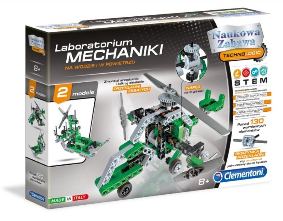 Bogate laboratorium, przy użyciu którego dzieci mogą się bawić podczas nauki i poznawać podstawowe zasady mechaniki i inżynierii. Dzięki ponad 130 elementom wchodzącym w skład zestawu, można utworzyć wiele konstrukcji o różnym poziomie trudności. Bogaty ilustrowany podręcznik naukowy prowadzi dzieci przez różne etapy montażu, wszystkie są całkowicie bezpieczne. Konstrukcja, koncepcja, opracowanie i produkcja są całkowicie we Włoszech! Dla dzieci w wieku od 8 lat