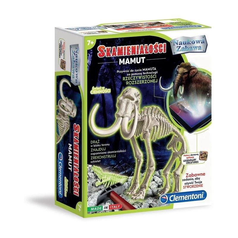 Drąż gipsowy blok i odkrywaj zakopane szczątki Mamuta. Złóż ostrożnie wydobyty fosforyzujący szkielet! Zestaw zawiera młotek i dłuto, aby stać się prawdziwym paleontologiem.