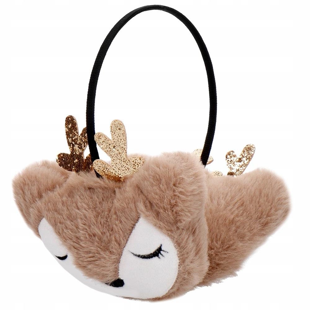 Bardzo przyjemne i wygodne nauszniki w kształcie sarenki. Z delikatnymi złotymi rogami. Pokryte przyjemną w dotyku pluszową tkaniną.