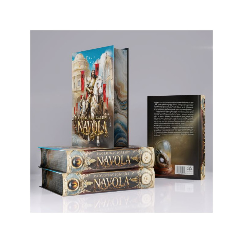 W Navoli, tętniącym życiem mieście-państwie zdominowanym przez garstkę wpływowych rodów, biznes to władza, a władza to wszystko. Przez pokolenia kupcy z rodu di Regulai pielęgnowali swoje wpływy w najdalszych zakątkach znanego świata. I choć twierdzą, że nie są politykami, to ich oszałamiające bogactwo kupowało miasta oraz obalało królestwa. Wkrótce Davico di Regulai obejmie władzę po swoim ojcu i będzie musiał zmierzyć się z intrygami i brutalną polityką innych możnych rodów. Ale za wspaniałą złotą fasadą Navoli kryją się też groźne i tajemnicze siły. Jedną z nich jest będące w posiadaniu rodu di Regulai oko smoka - potężny artefakt surowej mocy i talizman, który wydaje się wzywać młodego Davica do działania. Los młodzieńca zależy od tej starodawnej smoczej relikwii i od tego, co kryje się w sercu jego adoptowanej siostry, Celii di Balcosi, której rodzina została zniszczona przez pokrętną politykę Navoli. Paolo Bacigalupi to amerykański autor fantastyki, którego twórczość zalicza się do nurtu fantastyki ekologicznej i cyberpunka. Znany jest przede wszystkim z takich powieści jak Nakręca dziewczyna, Wodny nóż czy zbioru opowiadań Pompa numer sześć. Laureat licznych nagród, między innymi Nebuli, Hugo, Locusa i Johna W. Campbella. Powieścią Navola odkrywa nowe horyzonty, budując hipnotyzujący świat będący pomieszaniem renesansowych Włoch, Ojca chrzestnego i Gry o tron.