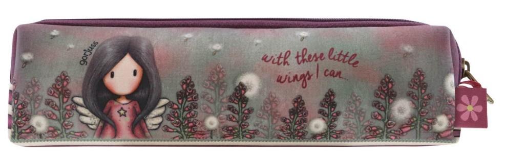 Neoprenowy piórnik - Gorjuss - Little Wings. Piórnik z detalami w odcieniach pastelowego różu i seledynu. Zmieszczą się w nim zarówno ołówki i długopisy, kosmetyki czy inne drobiazgi. Suwak ozdobiony medalionem w stylu antycznego mosiądzu. Wykonany ze szczególną dbałością, ozdobiony wizerunkiem dziewczynki Gorjuss ze skrzydełkami. Wspaniały prezent, funkcjonalny dodatek do każdego tornistra, plecaka czy biurka.