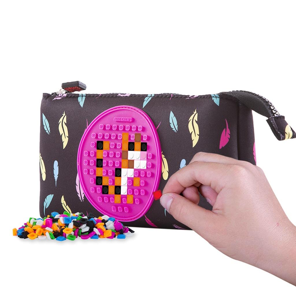Duży, wielofunkcyjny piórnik na suwak PIXIE CREW - Piórka, z kreatywnym różowym panelem, na którym można tworzyć oryginalne i spersonalizowane grafiki, za pomocą małych silikonowych pikseli. Wykonany został z praktycznego, wytrzymałego neoprenu z motywem kolorowych piórek. Piórnik zapinany jest na suwak. Wewnątrz znajduje się wystarczająco dużo miejsca nie tylko na przybory szkolne, ale również na inne małe rzeczy, które chcemy mieć pod ręką. Dlatego doskonale sprawdzi się także jako kosmetyczka czy saszetka. Piórnik jest sprzedawany z dodatkowym darmowym zestawem około 69 pikseli.
