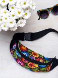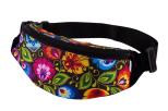 Saszetka damska / nerka FOLK na regulowanym pasku - łowicka czarna: